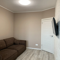 - Просторную комнату (18 м²) с зонированием на спальню и гостиную.