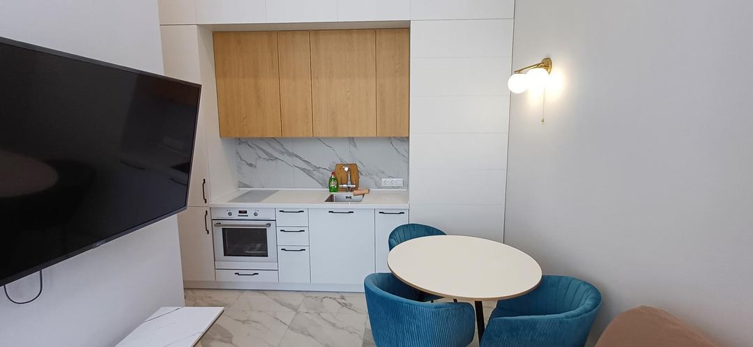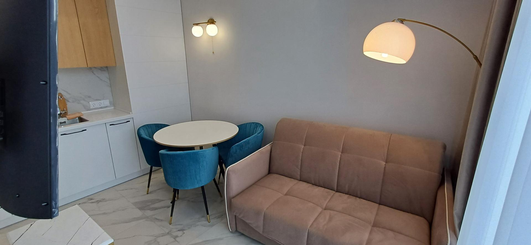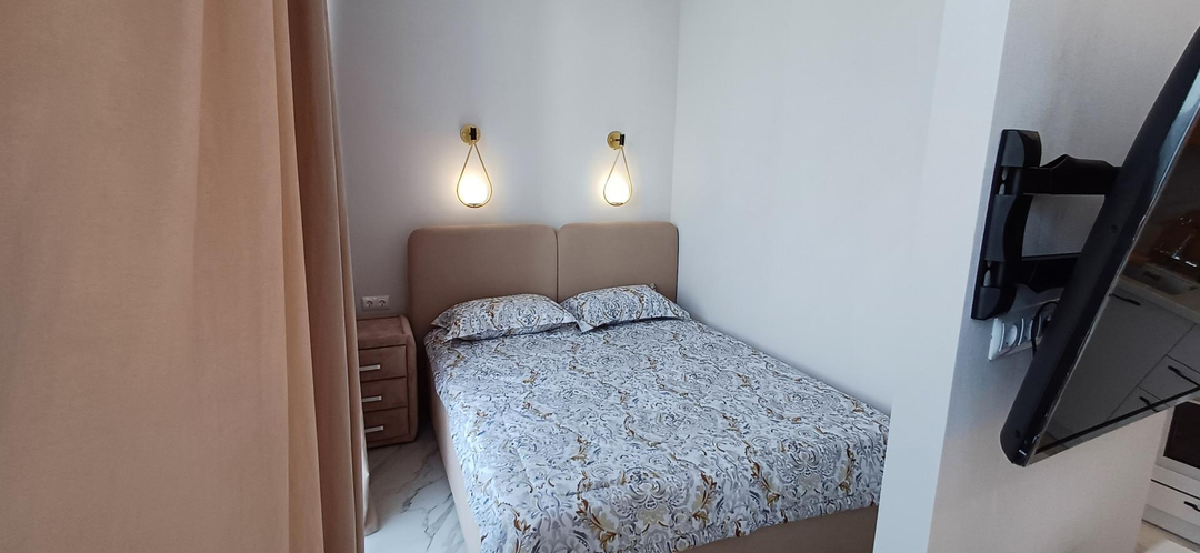 43 кв.м., балкон 5 кв.м, с мебелью и пpямым видом нa моpе .