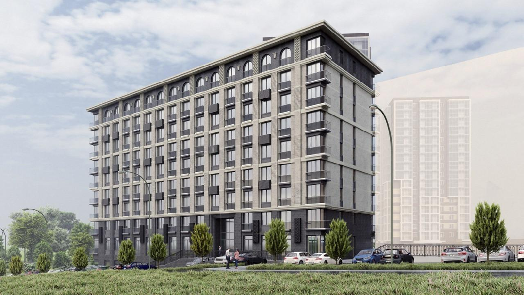 Во дворе подземный паркинг, видеонаблюдение, лобби, двери - домофон