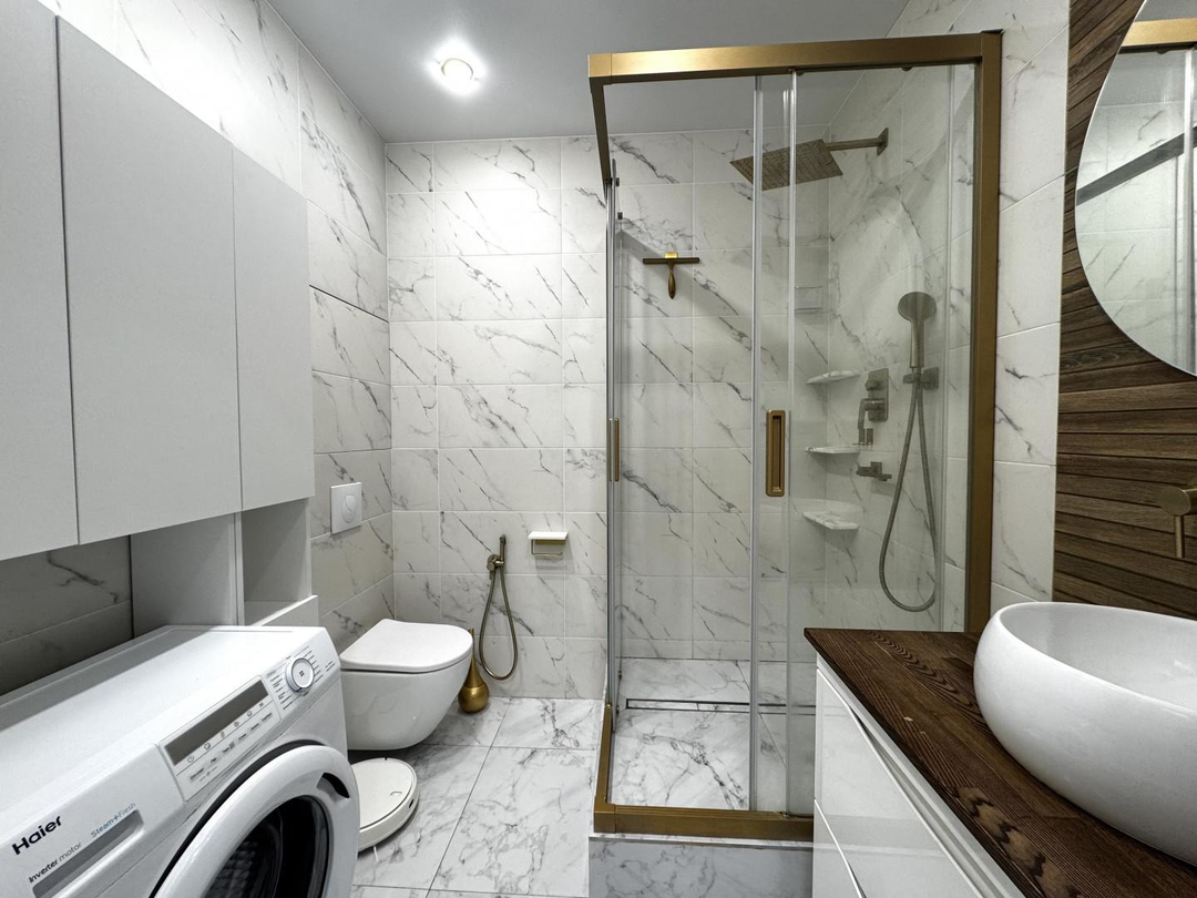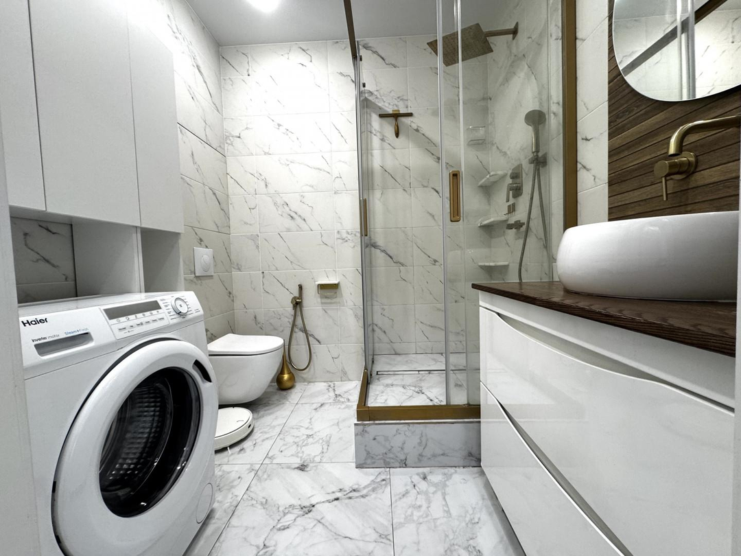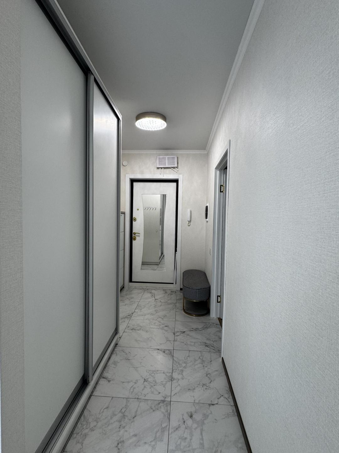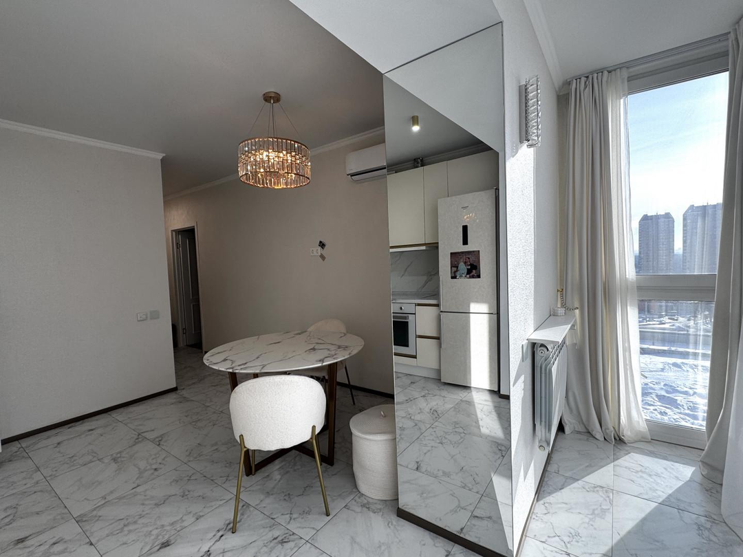 В квартире выполнен качественный, дизайнерский ремонт. Отдельная спальная комната, кабинет, просторная кужня с застекленой лоджией, теплые полы, кондиционер. Соседи прилиные. Подъезд чистый, ухоженный. Во дворе детские и спортивные площадки.