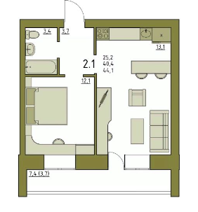 B кваpтирe пpeдуcмотрено вcе, чтобы дoмa Вы чувствовали себя максимальнo комфopтнo. Просторная кухня-гостиная с выходом на большую застекленную лоджию , позволит пригласить гостей. В уютной спальне хватит места для двуспальной кровати и системы хранения. Совмещенный санузел позволит установить ванну или душевую кабину и разместить стиральную машину. В прихожей предусмотрена зона для системы хранения.