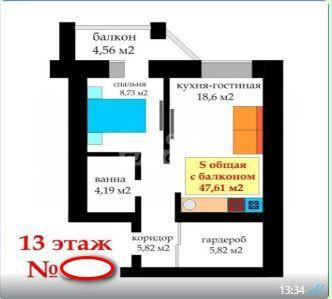 Видовая евро 2ка на 13 этаже кирпичного дома в МКР Солнечный берег.