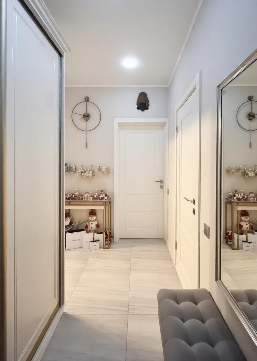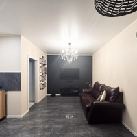 На полу, а также во всей ванной комнате керамогранит Kerama Marazzi, в спальне - ламинат премиального качества