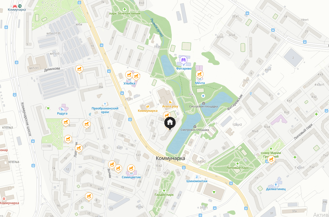 - 14 минут спокойным шагом до метро Коммунарка (зеленая ветка).