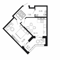 1-комнатная 44.4 м2 в ЖК undefined корпус null этаж 2