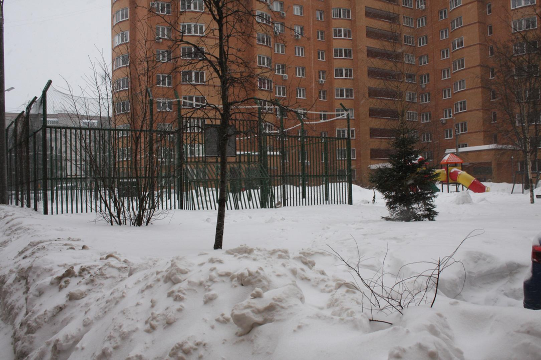 Территория благоустроена: детская площадка, открытая парковка во дворе.