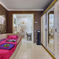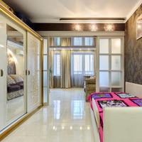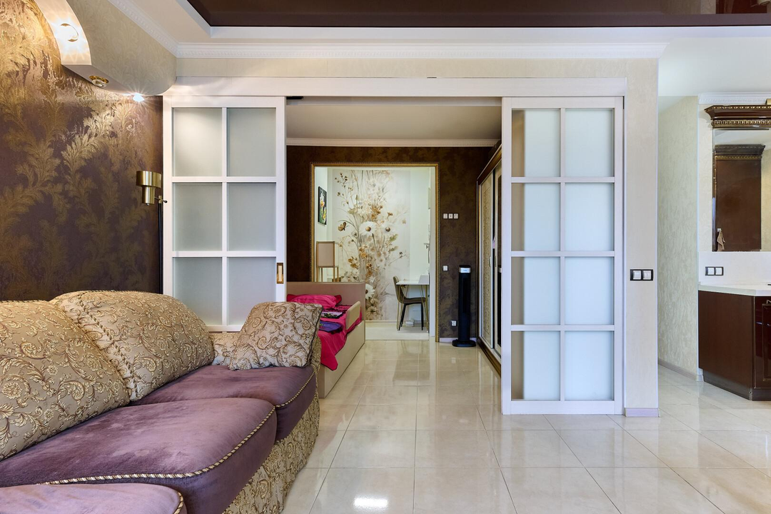 В квартире сделан свежий качественный ремонт с использованием дорогостоящих материалов. Полная шумоизоляция по всему периметру- тишина и комфорт! Гибкое зонирование комнаты: легкопрофильная перегородка из алюминия позволяет разделить комнату на две зоны.