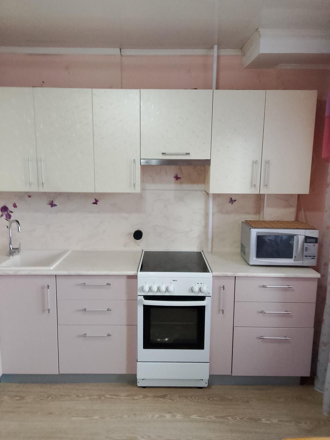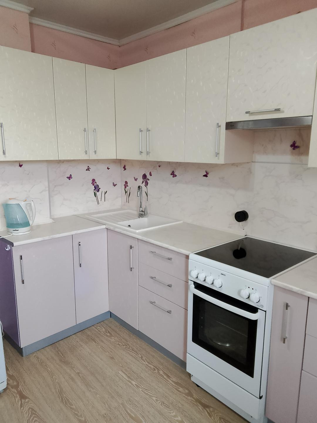 В квартире остается : встроенная кухня , электрическая плита, кухонный и компьютерный стол,