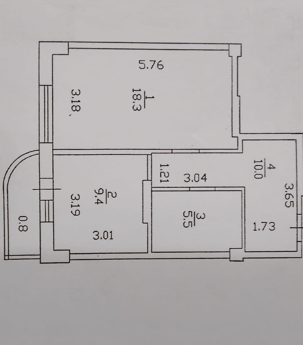 общая площадь 43.2 м2 + балкон