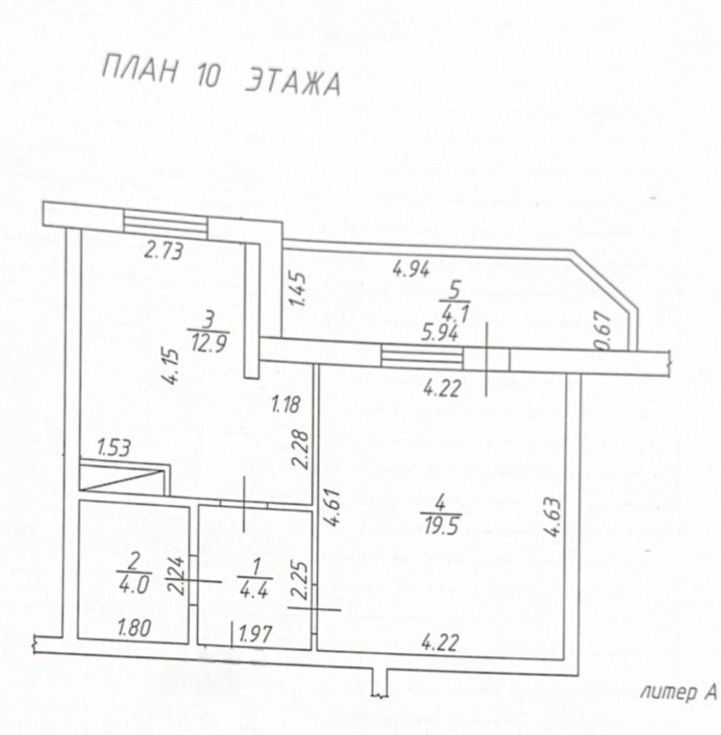 -1 комнатная просторная квартира общей площадью - 44,9 кв.м. кухня 12,9 кв.м,с планировкой на одну сторону (во двор). В квартире сделан косметический ремонт, сан. узел совмещен. Располагается на 10 этаже 14 этажного кирпичного дома.