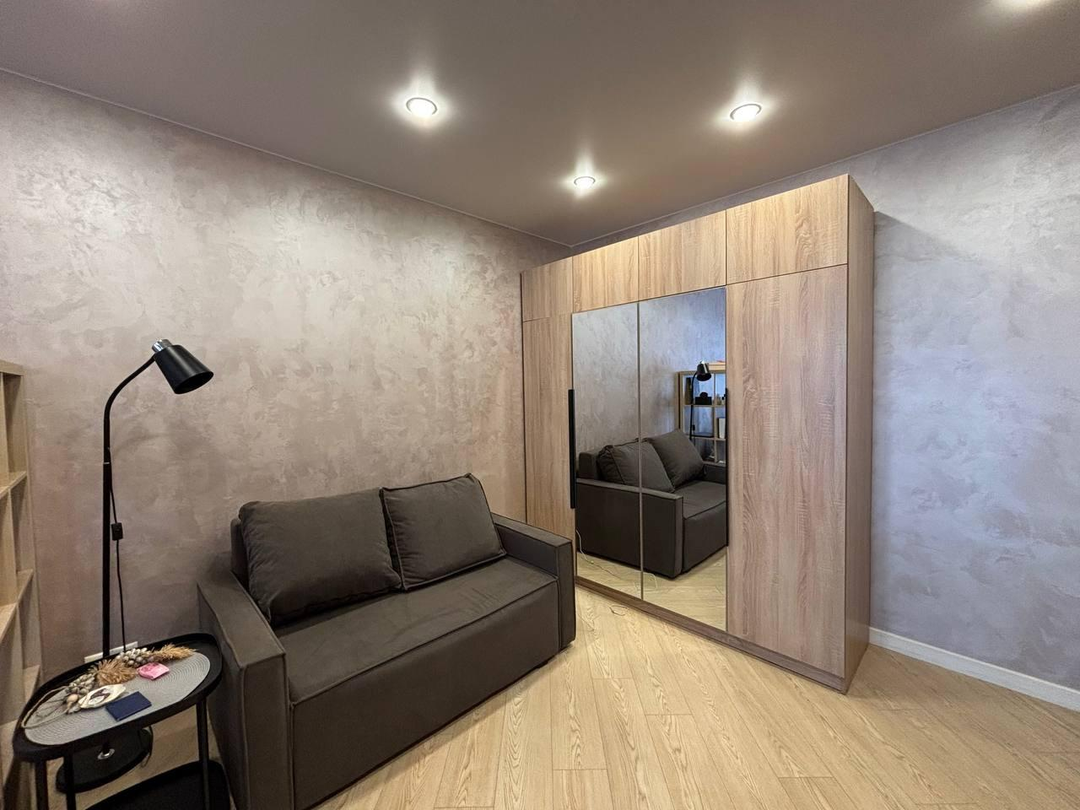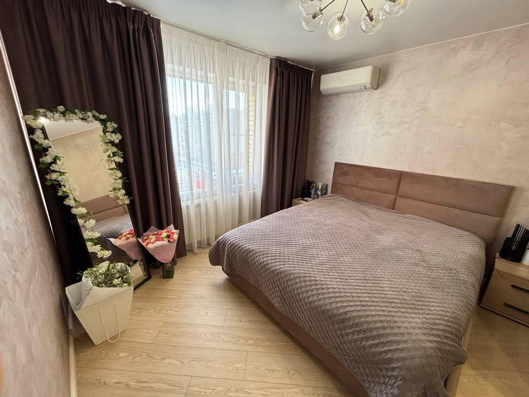 Общая площадь квартиры 44 метра, просторная комната 23 метра и кухня 11 метров с выходом на лоджию. Квартира в хорошем состоянии, пол ламинат и плитка, окна ПВХ, санузел в плитке, лоджия застеклена, солнечная сторона, окна выходят во двор.