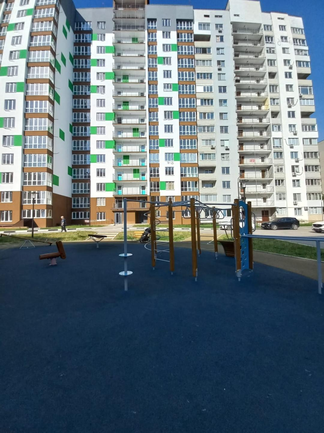 Очень уютный двор с чудесными детскими площадками и скамейками для отдыха.