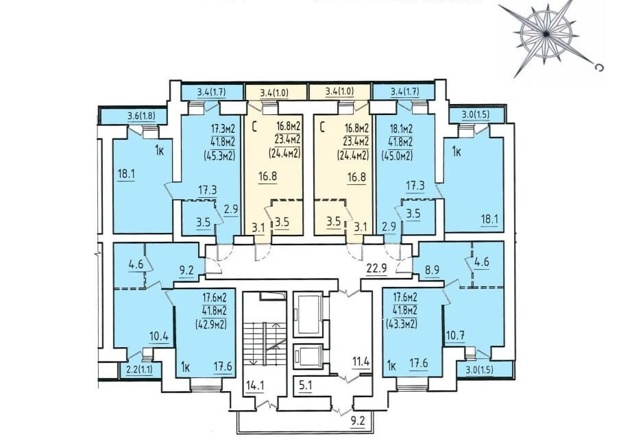 Разнообразие планировок для вашей жизни: В этом корпусе вы найдете идеальное пространство для себя! От уютных студий (от 24.4 м2) до просторных евро-3 (до 80.4 м2) — выбирайте то, что подходит именно вам.