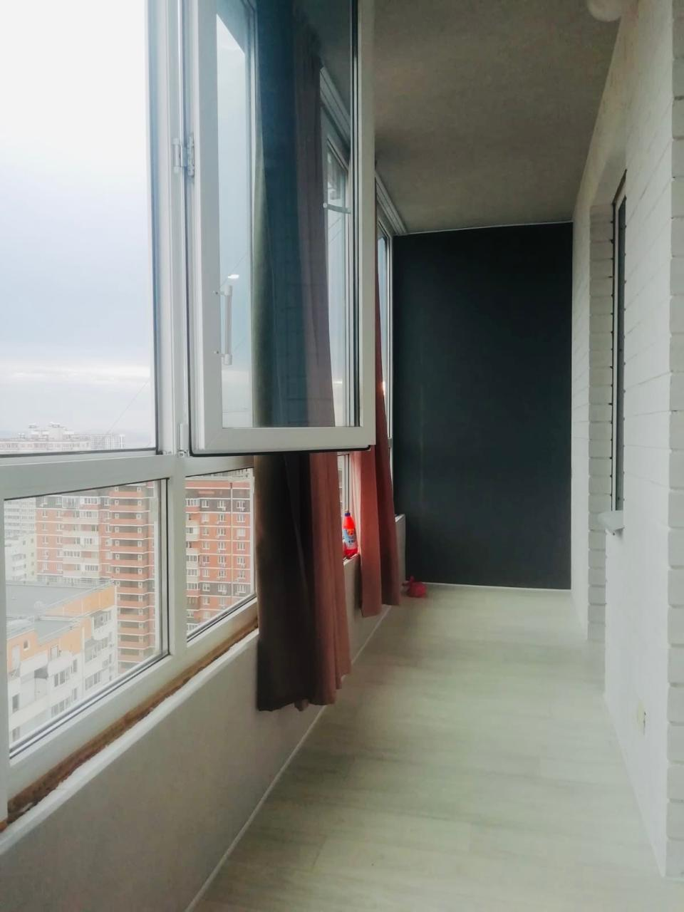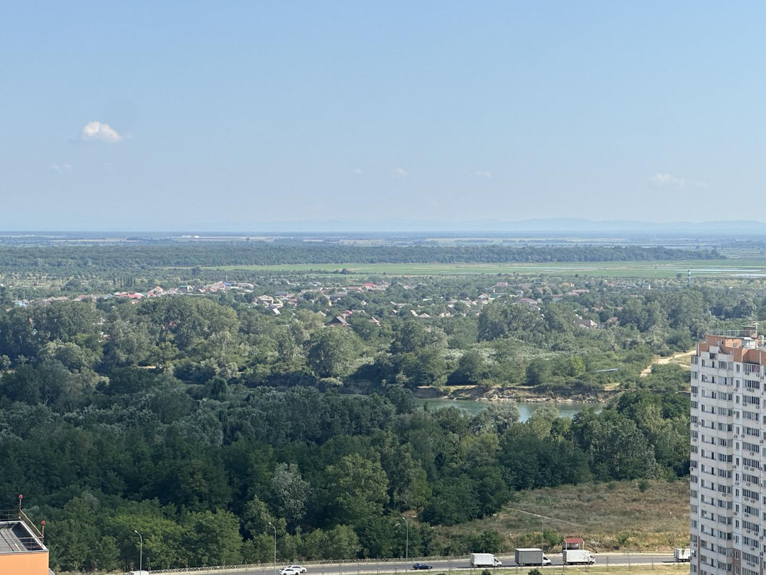 Квартира расположена на 23 этаже 24-этажного монолитного дома с панорамным видом на р.Кубань и горы. Общая площадь квартиры по выписке ЕГРН составляет 38,7 кв. м, с балконом площадь - 45,54, площадь застекленного и утепленного балкона составляет - 6,84 кв м.