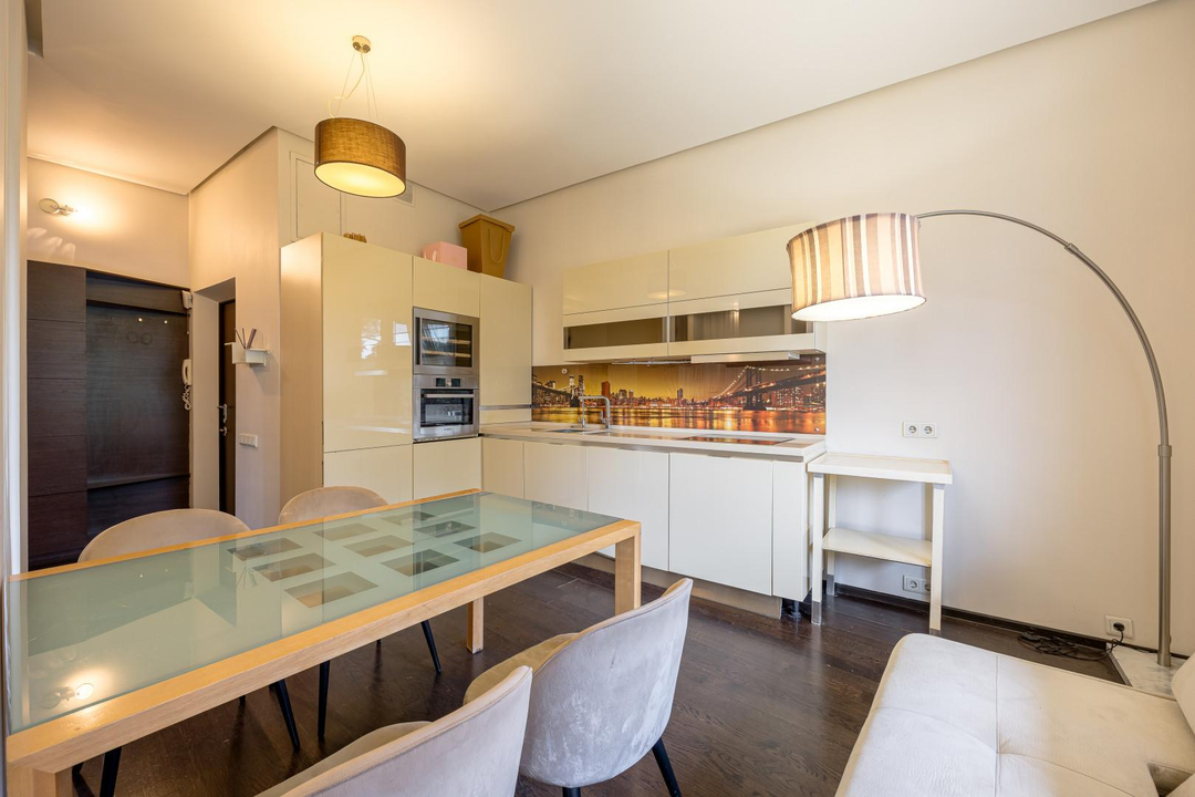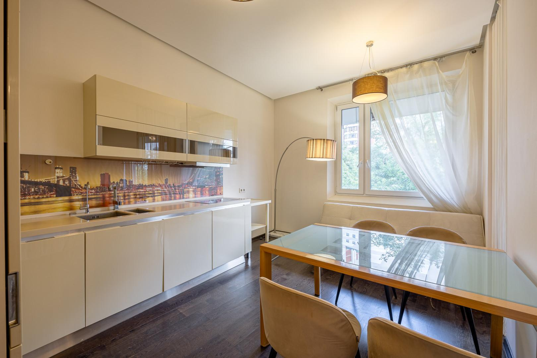 Комплектация:Премиальная техника: Liebherr, BoschПолный комплект: холодильник, посудомоечная и стиральная машиныДуховой шкаф с СВЧ-печьюВинный шкаф LiebherrКондиционер для комфортного климатаБойлер для бесперебойной подачи водыСтильная обувница во всю стенуКачественный диван BoConceptДеревянные полы — экологичность и комфорт