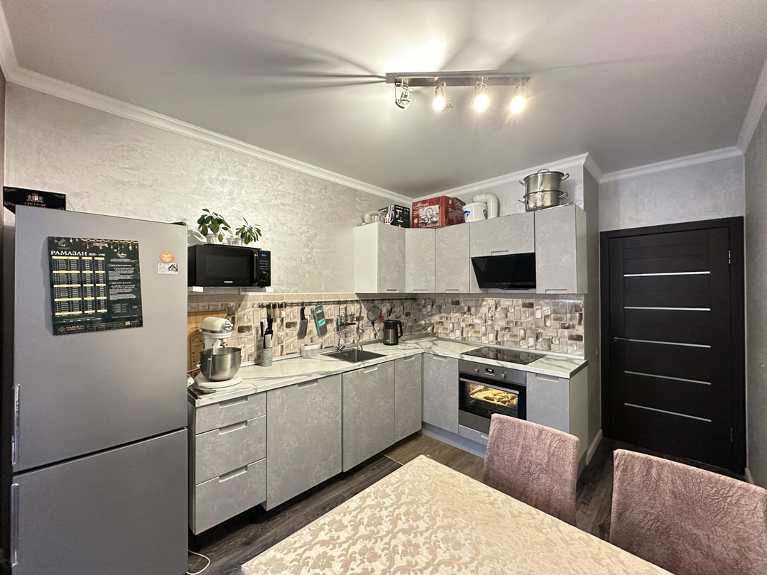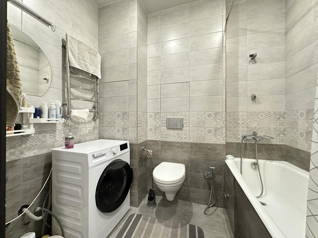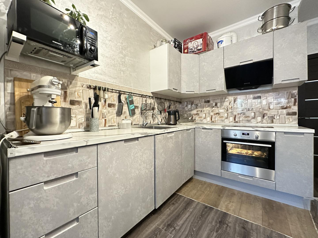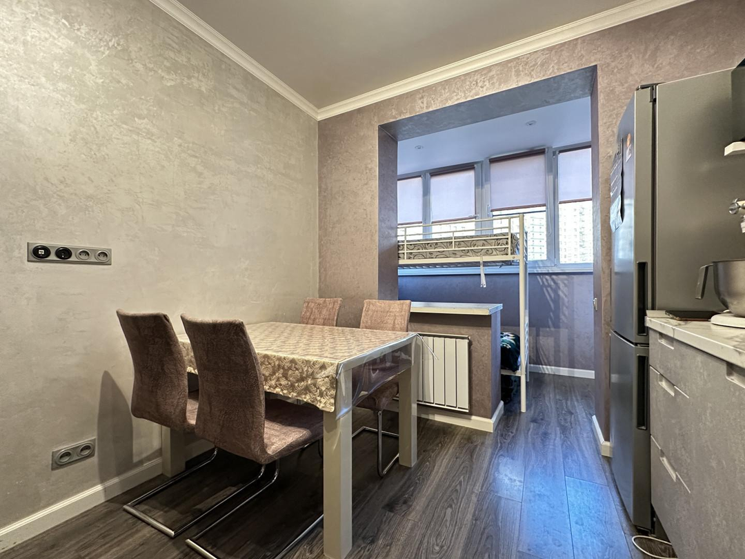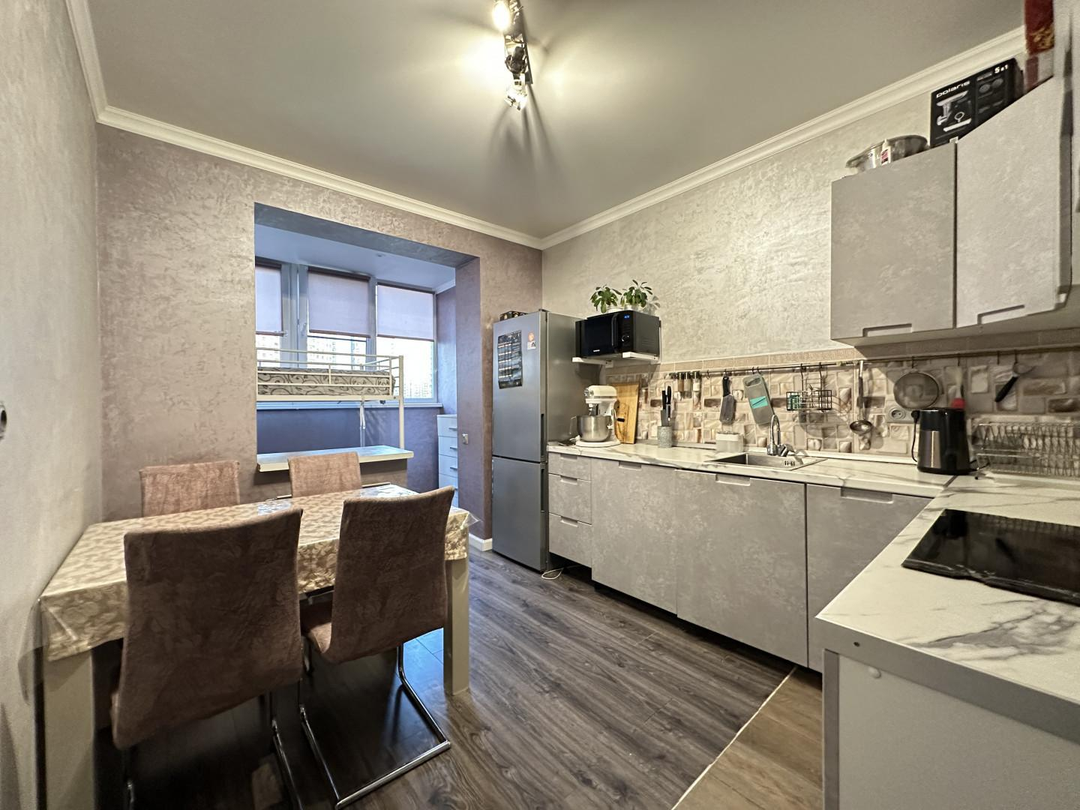 Предлагаю Вашему вниманию комфортную , со светлой аурой 1-кoмнатную кваpтиpу 45 кв.м ! В которой чувствуется атмосфера теплоты , спокойствия и уюта . Кухня с современной техникой (плита, вытяжка, холодильник) , хорошая прихожая с гардеробной. На кухне качественный ламинат , в прихожей и сан. узле кафель. Большой застекленный балкон , разделенный на два , вход с комнаты и кухни.