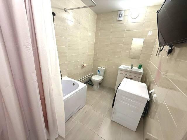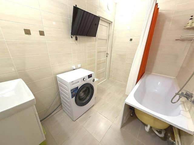 Стиральная машина, корзина для белья, тумбы и полноценная ванна. Забудьте о сушилках в комнате.