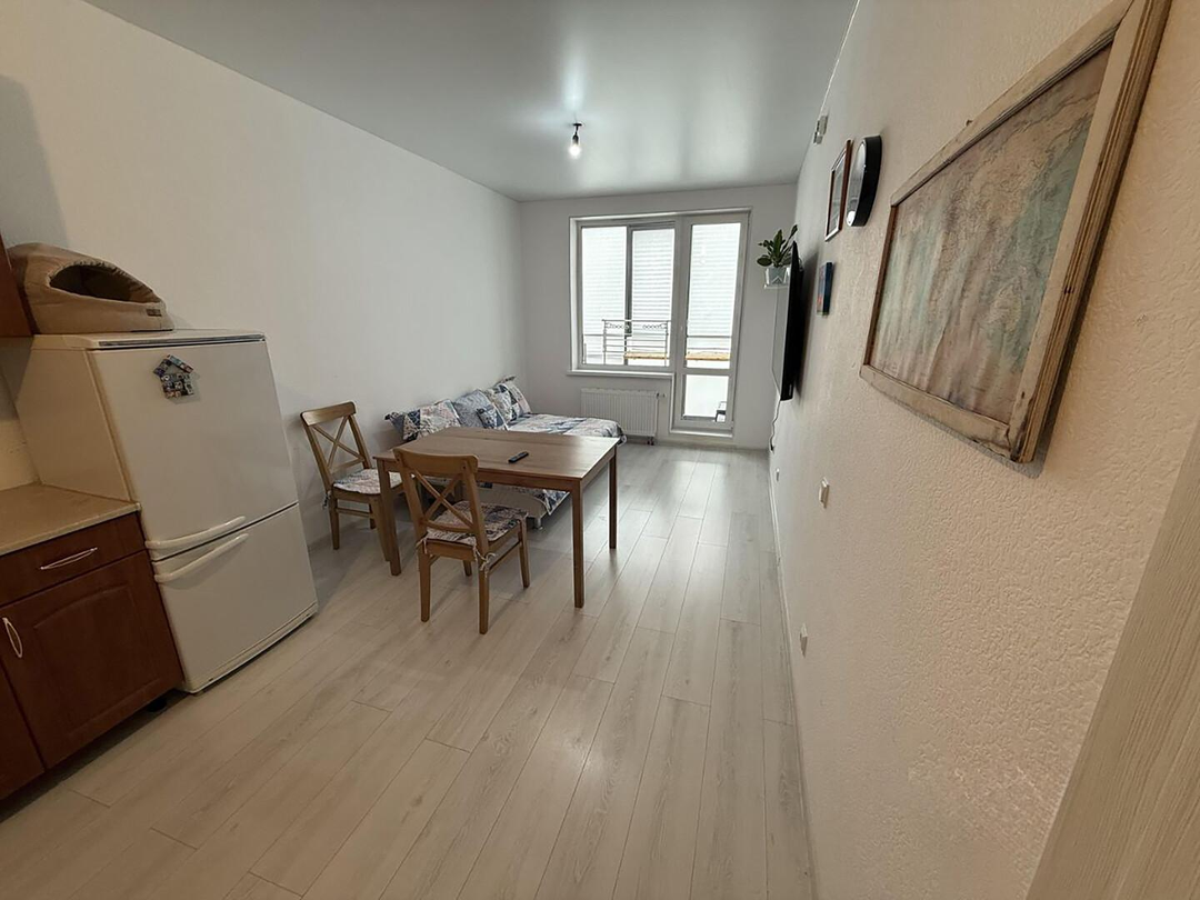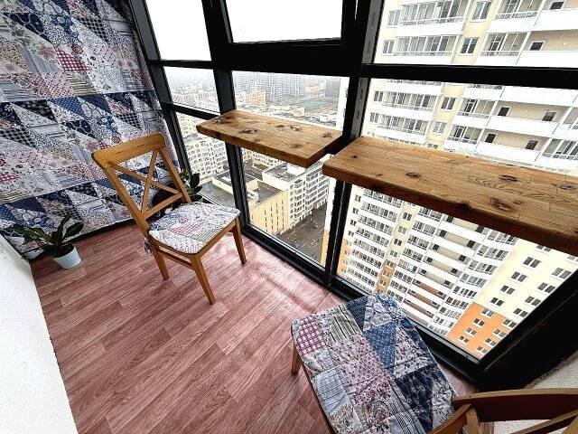 Интересная, функциональная планировка:Кухня-гостиная 18,8 м² с выходом на застеклённый панорамный балкон.