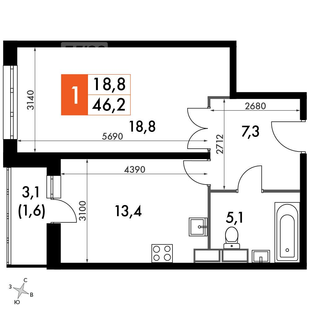 46 м²