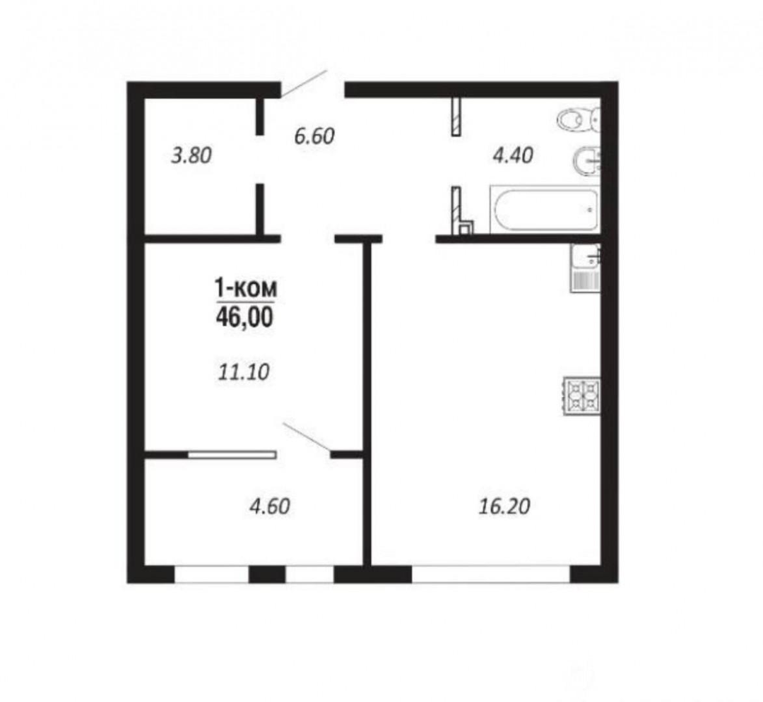 Простор и потенциал. Целых 46 кв.м. в однокомнатной квартире! Это редкая возможность создать стильное студийное пространство с зонированием или оставить уютную спальню и большую гостиную. Идеально для одного человека или пары.