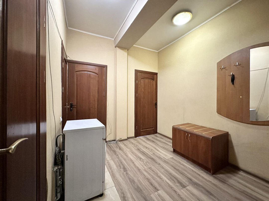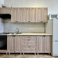 • Ремонт: В квартире выполнен косметический ремонт. На полу площади всей квартиры ламинат, в санузлах керамическая плитка. Стены выровнены и оклеены обоями. Полностью заменена проводка на новую! Потолки натяжные. Установлены хорошие межкомнатные двери массив дерева. Встроенная кухня.