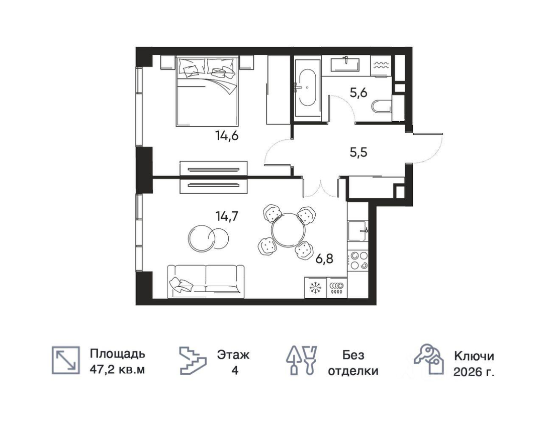 14,6 м²