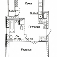 - Общая площадь: 44 м2 + застекленная лоджия 3 м2.