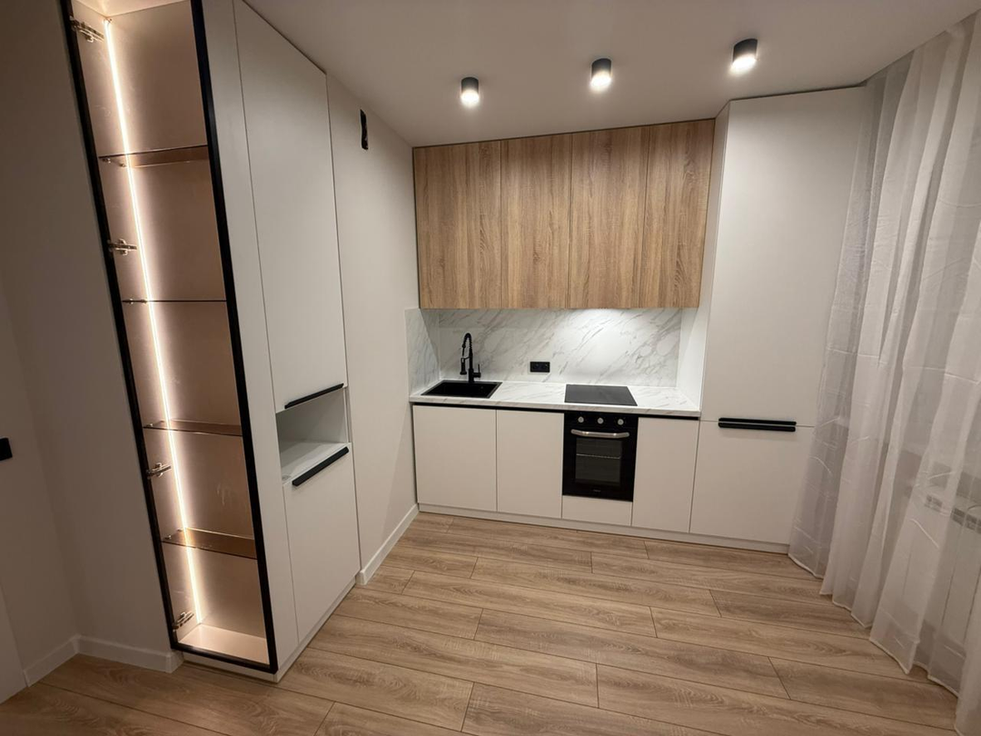 Интерьер выполнен в светлых тонах, создающих атмосферу уюта и гармонии. Просторная комната легко зонируется под ваши потребности. Кухонный гарнитур со встроенной техникой остается новым владельцам, что позволит сразу начать готовить и наслаждаться комфортом.Санузел отделан качественным кафелем, что гарантирует долговечность и простоту в уходе. Все элементы квартиры выполнены с учетом современных стандартов и требований.