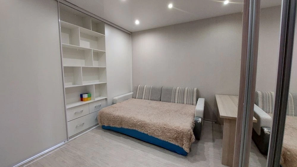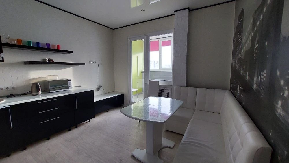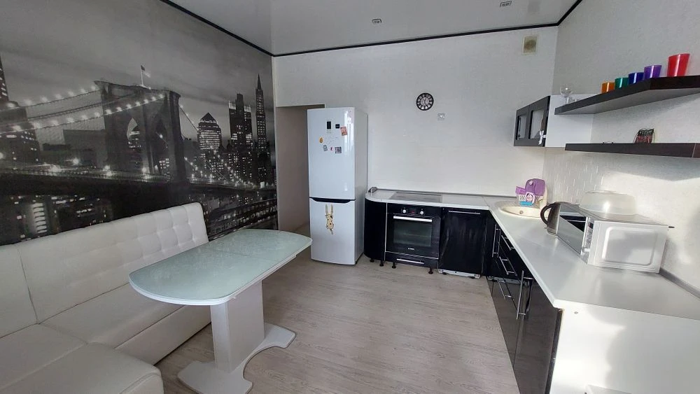 Преимущества:остаётся вся мебель и техника (кроме телевизора) — заезжайте и живите;благодаря оптимизации жилого пространства комнаты при помощи раздвижной перегородки вы покупаете двух комнатную квартиру;развитая инфраструктура: в шаговой доступности школа, два детских сада, парк и торговые центры;множество секций для детей и взрослых рядом с домом;удобная транспортная развязка — легко добраться в любой район города без пробок;во дворе есть подземный паркинг и наземные места для парковки.