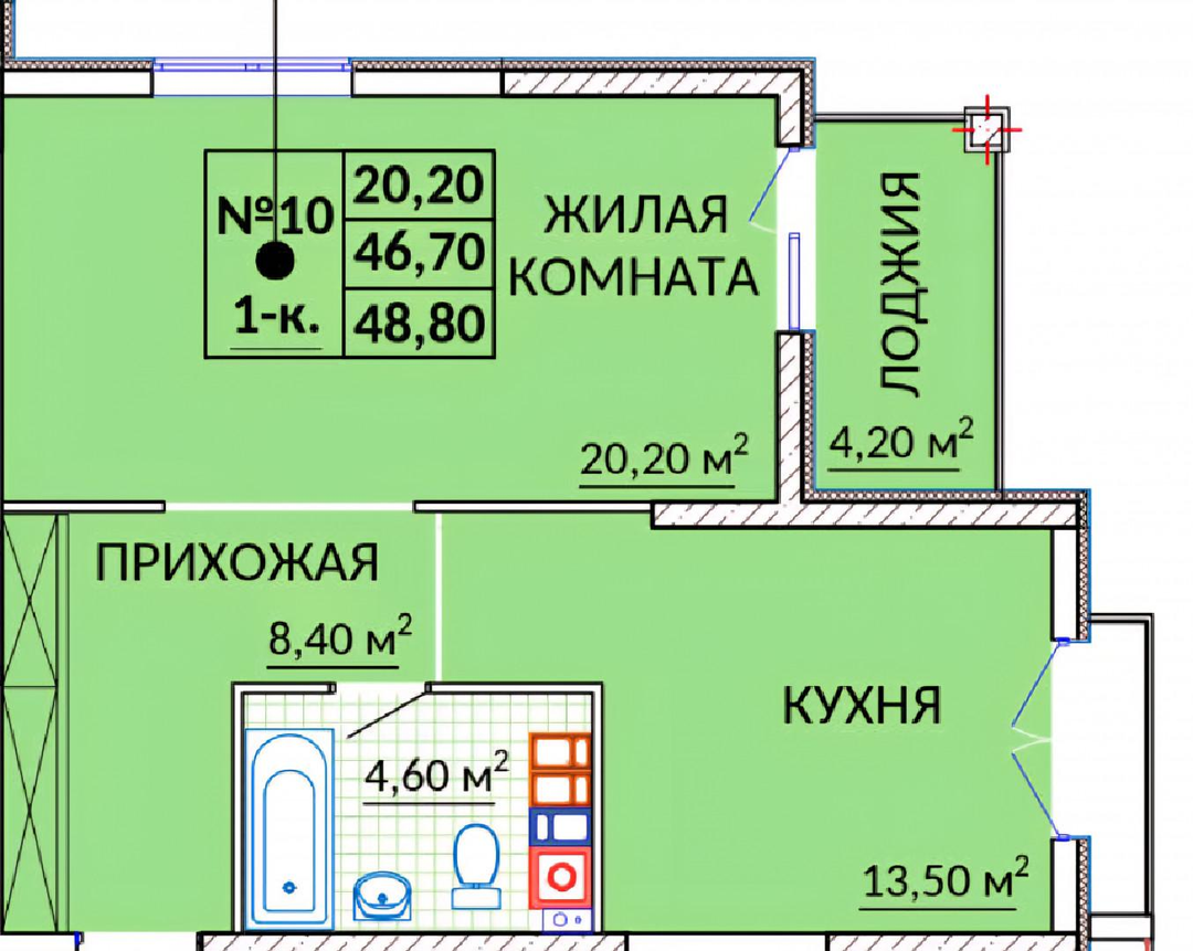 Площади квартир здесь от 48 до 70 кв.м., высота потолков 2,9 м., панорамное остекление.