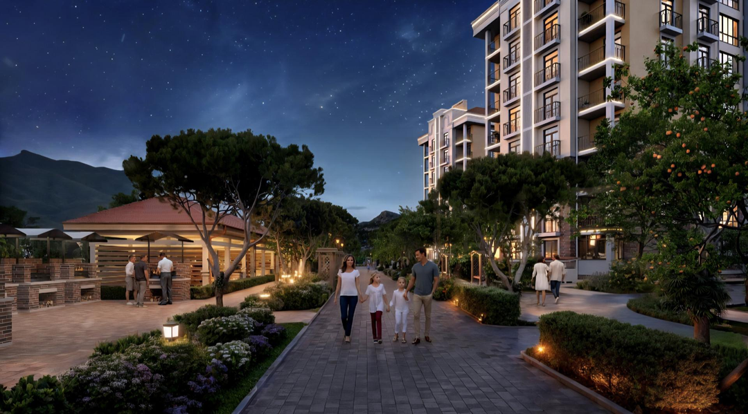 Закрытая благоустроенная охраняемая территория с прогулочным променадом, фонтанами, амфитеатром, зонами для отдыха, гриль-домиками и велодорожками, концепция "город в городе", парк-сад с бассейном, ресторанный дворик, детские и спортивные площадки, консьерж-сервис 24/7, разнообразная коммерция на территории - все для Вашего комфортного отдыха и проживания на курорте, а также получения достойного инвестиционного дохода.