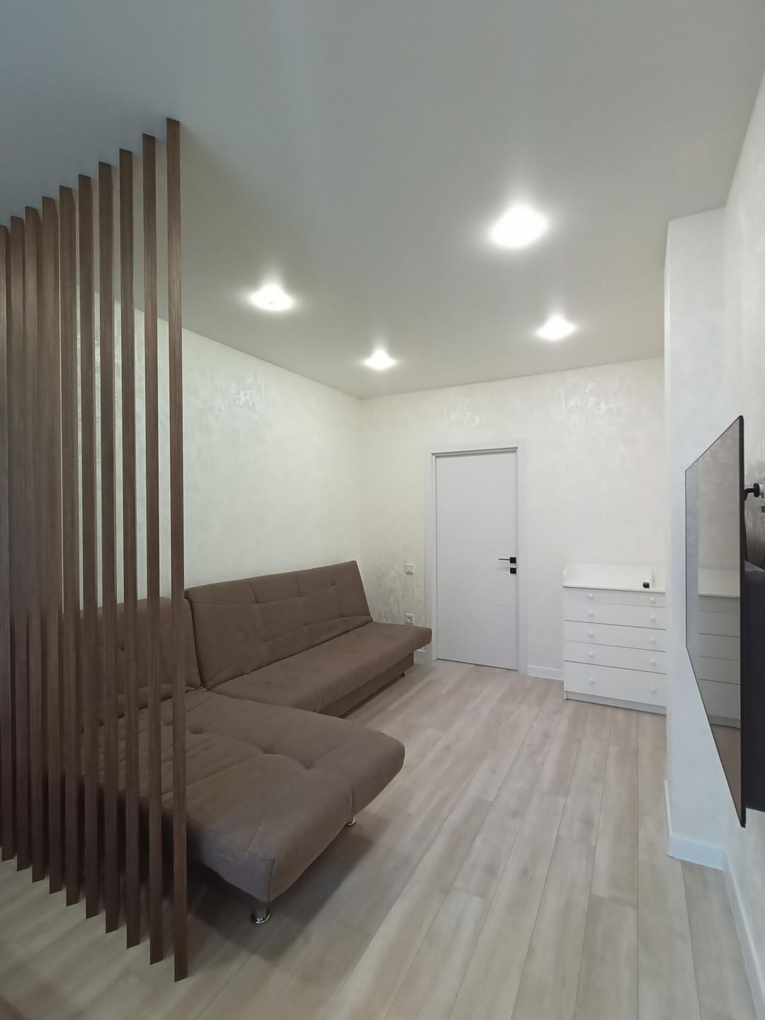 Комната комфортно зонирована на гостевую и спальную зону. Установлен кондиционер для полного комфорта. Есть индивидуальный прибор учета отопления с регулировкой подачи. За счет индивидуального прибора достигается экономия на коммунальных платежах.