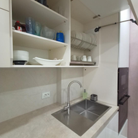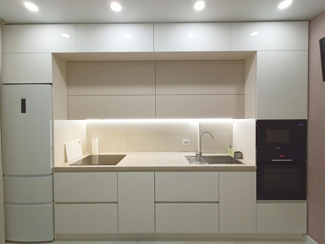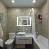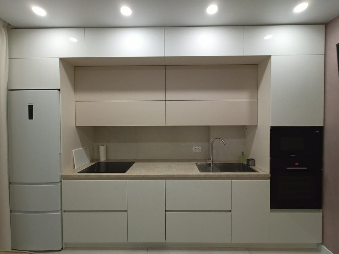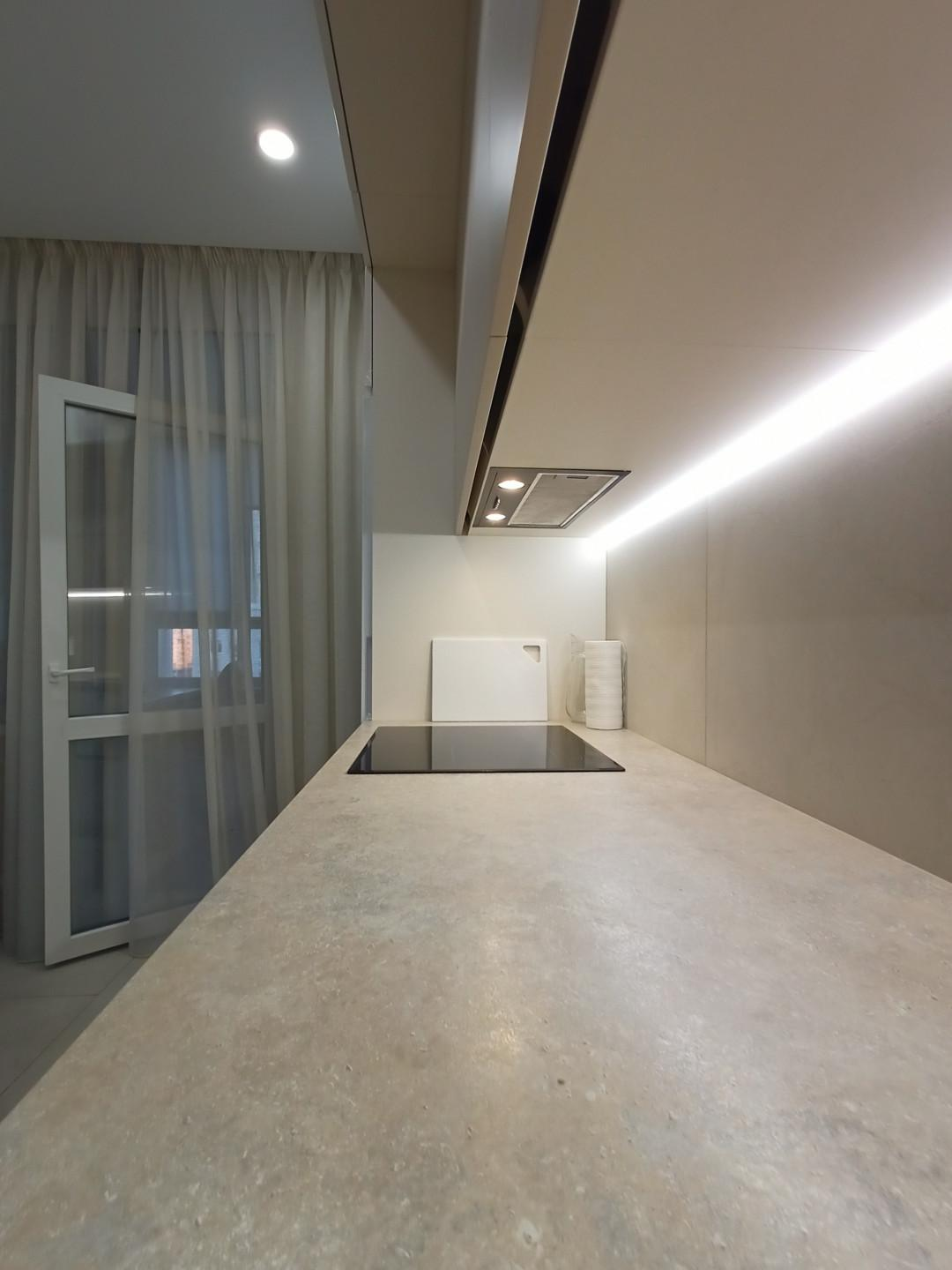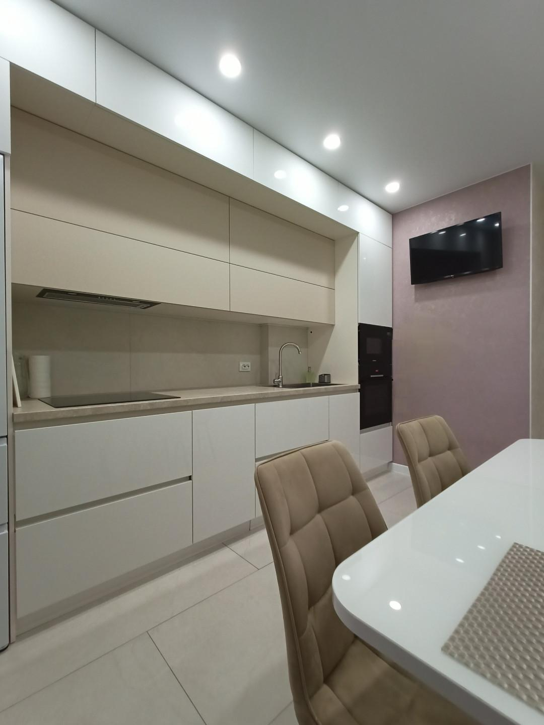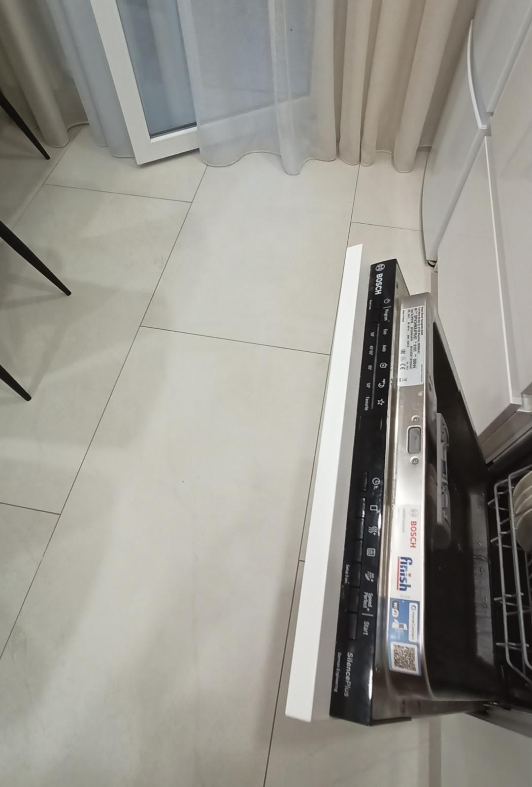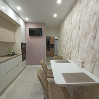 На кухне на пол положен широкоформатный керамогранит, в комнате уложен ламинат высокого класса. Кухонный гарнитур - мечта хозяйки, вместительный, практичный, с отличной подсветкой. В гарнитуре установлена качественная долговечная фурнитура. Есть посудомоечная машина Bosh.