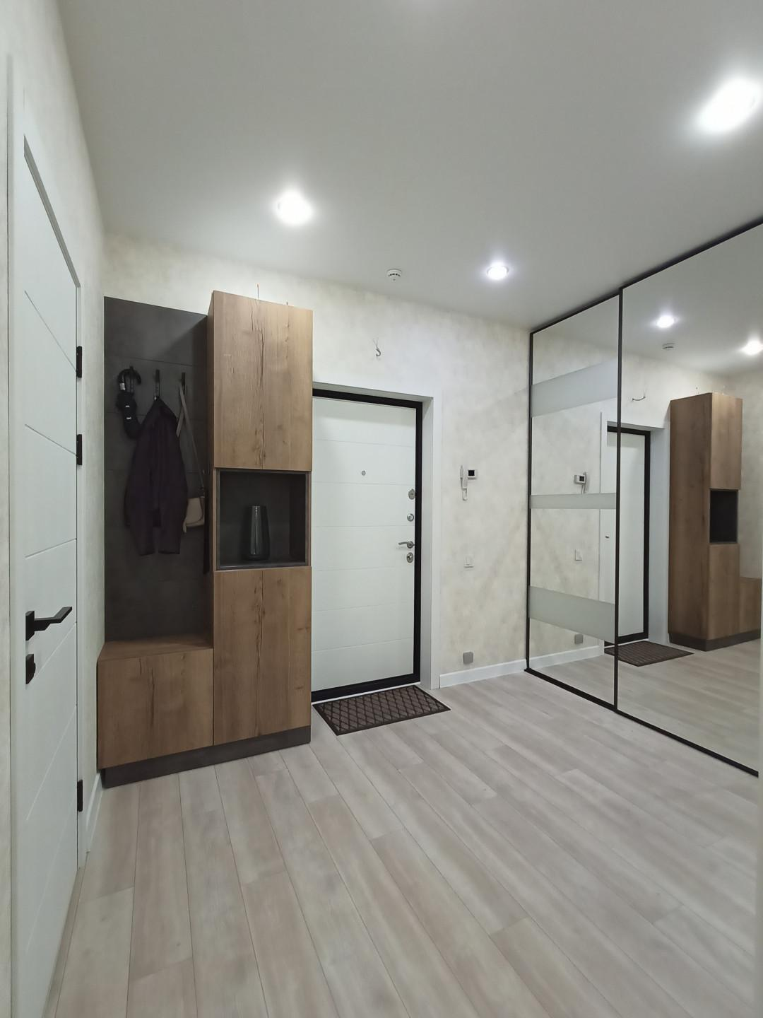 Квартира полностью укомплектована дорогой мебелью и техникой. Забирают только один телевизор. Вместительная гардеробная-купе в прихожей, в ней поместится вся одежда, а также пылесос и бытовые предметы. Двери-купе у гардеробной с дорогой и надежной фурнитурой. На фото видно.