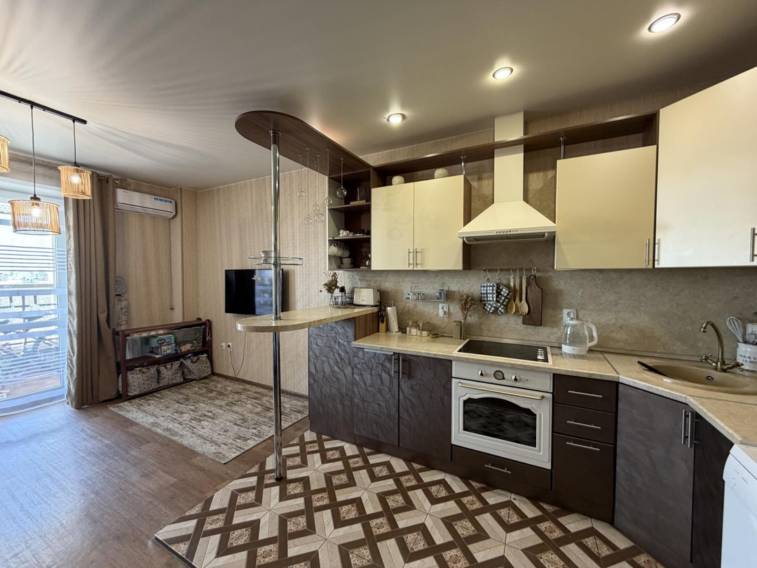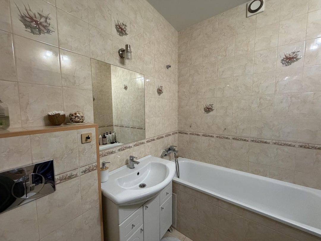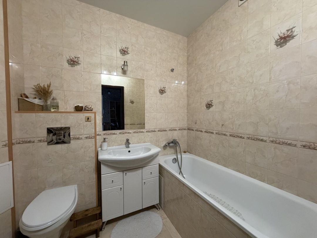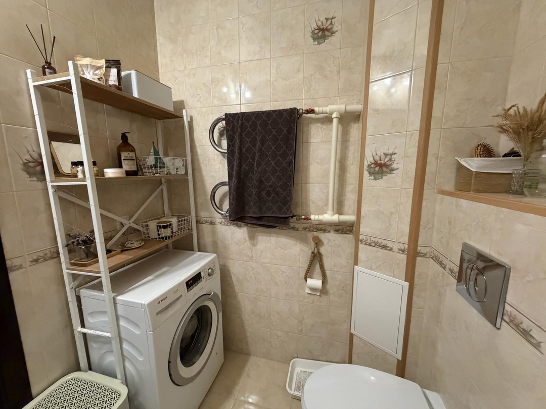 Совмещенный санузел полностью выложен кафелем и оборудован всем необходимым.Теплые полы в зоне кухни и в санузле создадут дополнительный уют в холодное время года.Кухонный гарнитур со встроенной техникой уже ждет своих новых хозяев, чтобы вдохновлять на кулинарные шедевры.