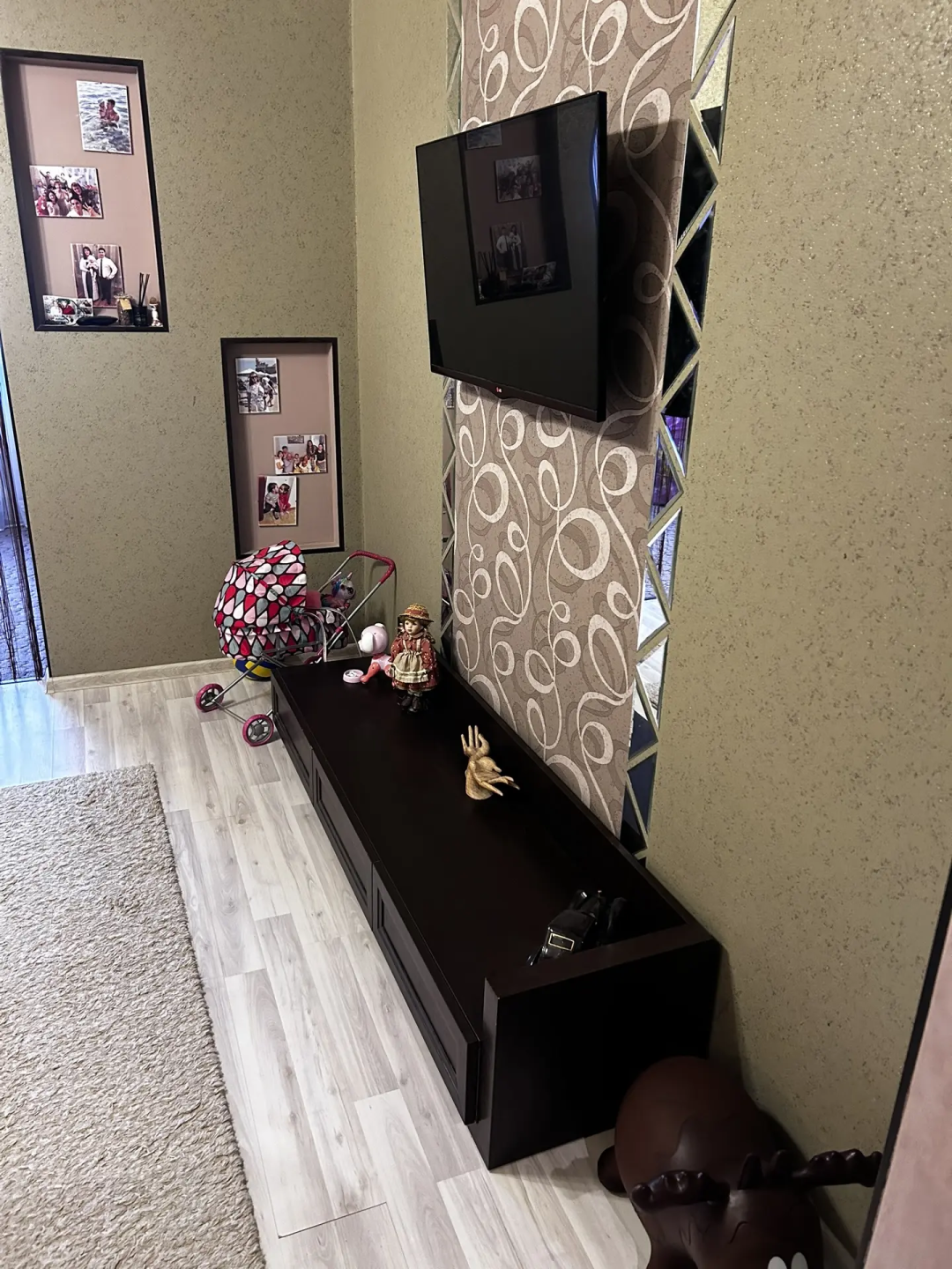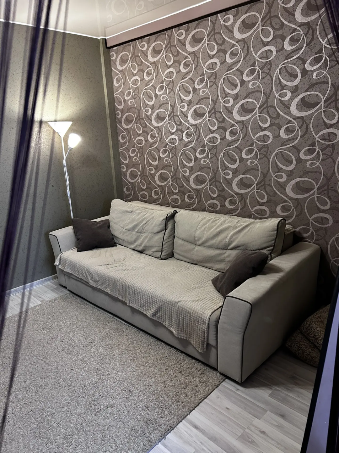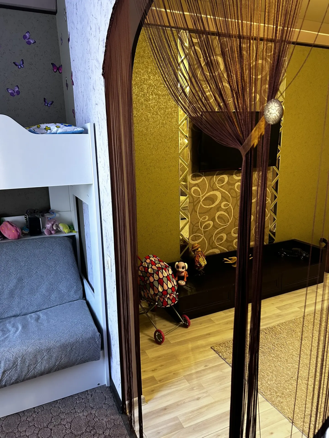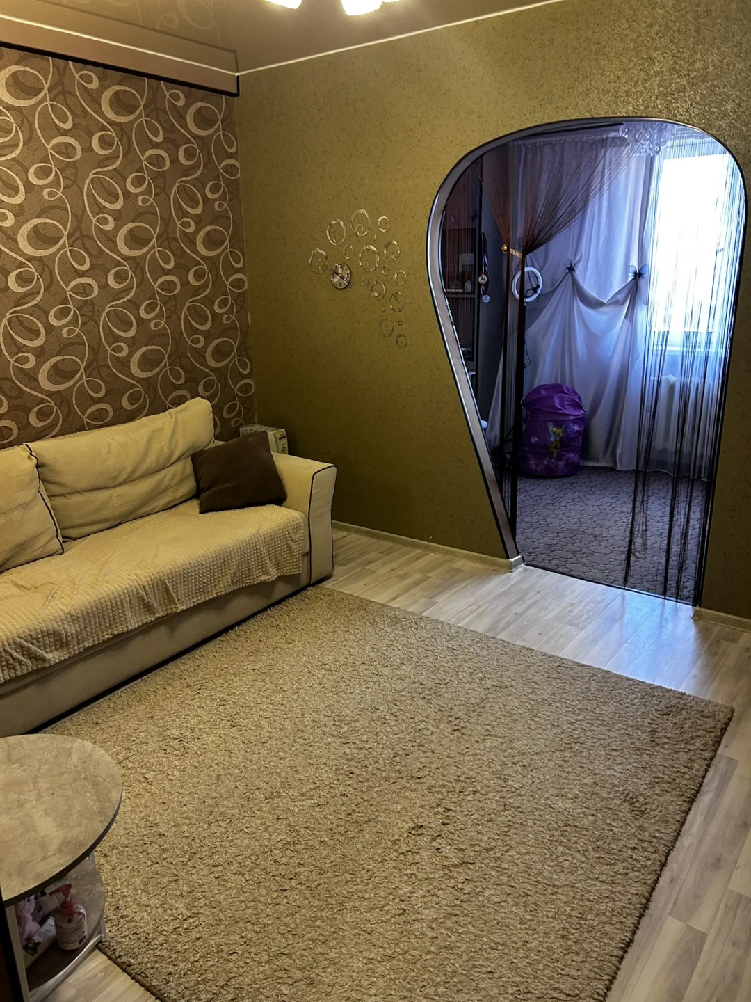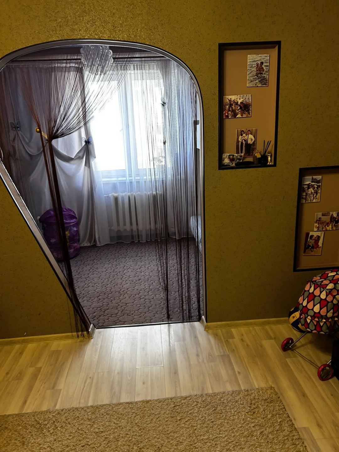 - Комната с перегородкой — при желании её можно убрать