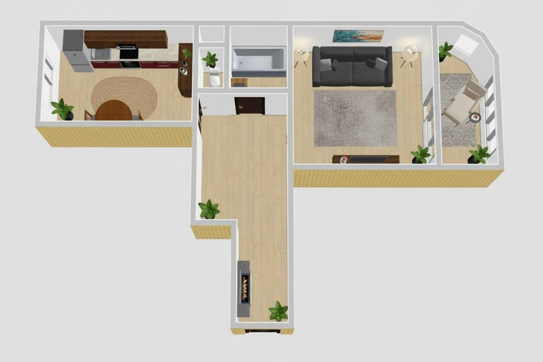 Евроремонт выполнен качественно — не нужно думать о том, что где-то отклеиваются обои или протекают трубы. Все готово к заселению. Балкон — ваше личное пространство. Утром — чашка кофе с видом на город, вечером — отдых после рабочего дня. Можно поставить столик и два стула — получится мини-терраса для теплых вечеров.