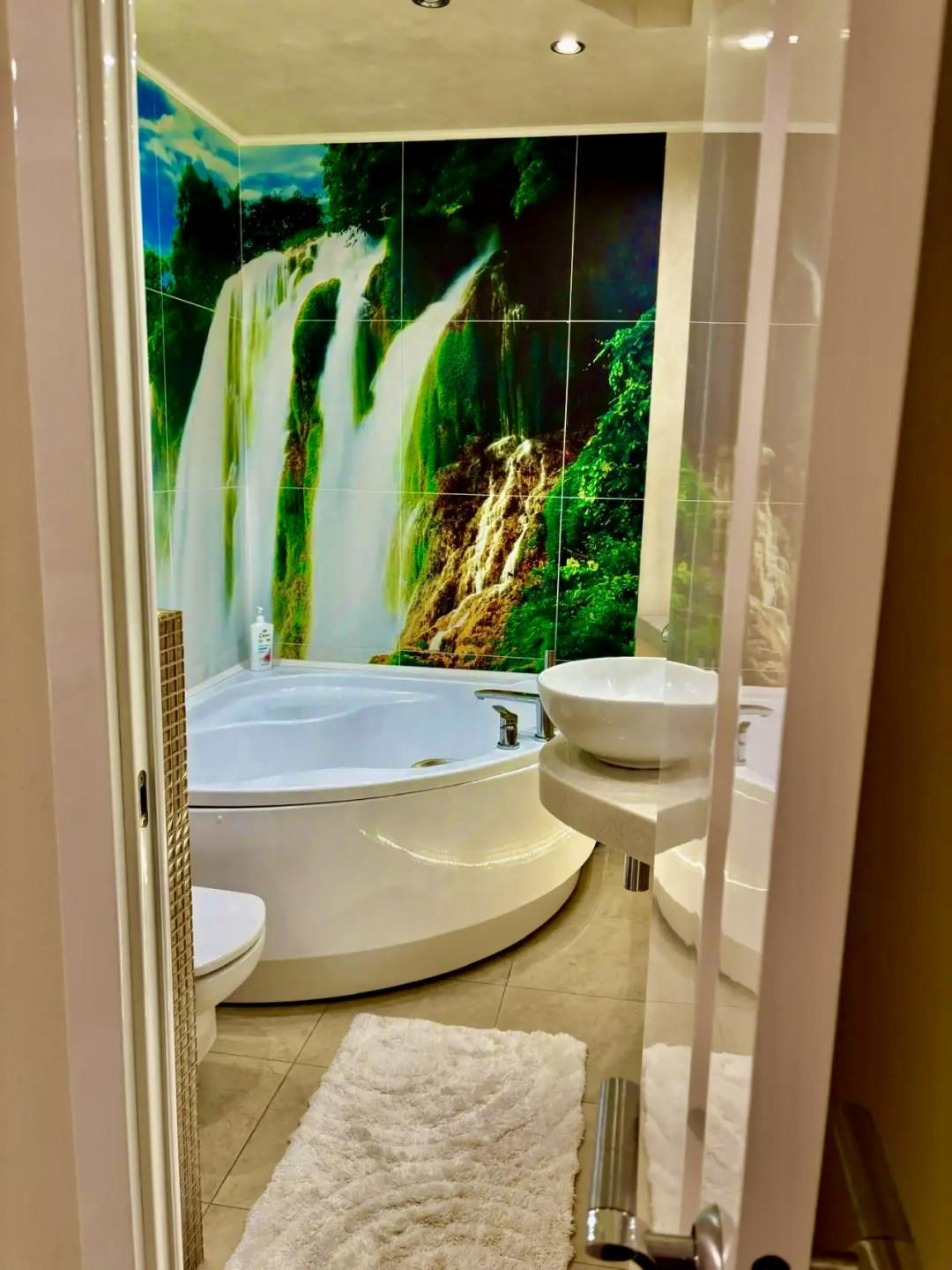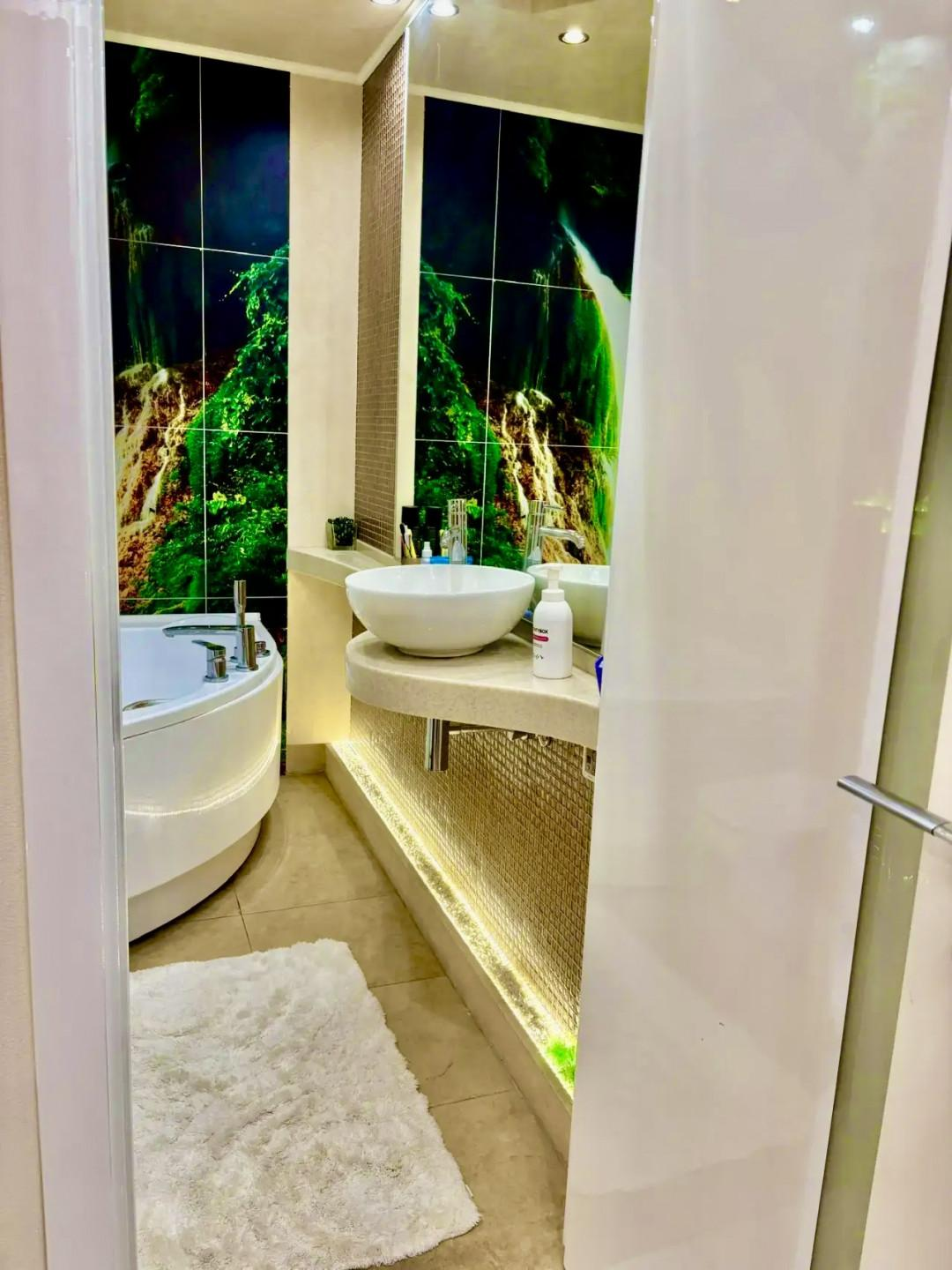 Санузел совмещённый, оформлен стильными элементами, с ванной для полноценного отдыха после трудного дня.