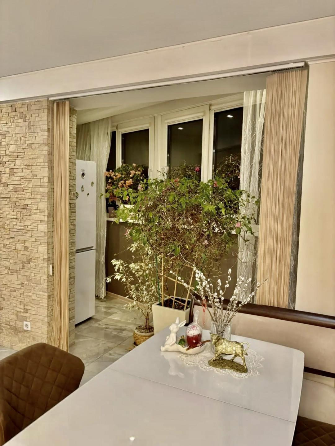 Лоджия, объединённая с кухней — дополнительное пространство для уюта и комфорта, которое станет любимым местом для утреннего кофе.