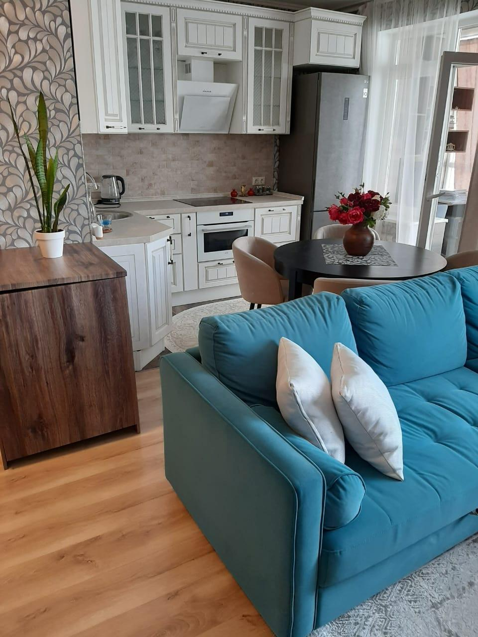 Уютная теплая просторная Двухкомнатная Квартира с дизайнерским ремонтом из высококачественных материалов. Установлены теплые полы, остается вся встроенная мебель и техника. Заезжай и живи!