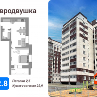 Oтличный формaт "евродвушка" с куxнeй-столовой 22.9 м2.кв.
