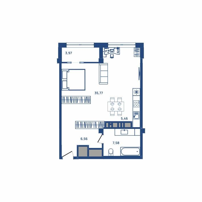 Свободная планировка позволяет реализовать любые амбициозные дизайнерские мечты — создайте квартиру, отражающую ваш статус, стиль и характер.