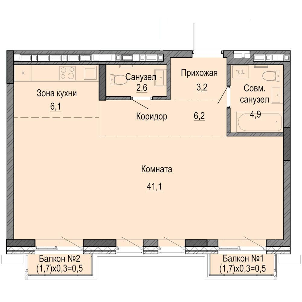 Продаётся квартира свободной планировки площадью 64 квадратных метра на 5-ом этаже 11-ти этажного монолитно-кирпичного дома (2025 год постройки) в центре города Ижевска по адресу улица Бородина, 20а.