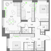 3-к. квартира, 98 м²