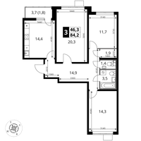 3-к. квартира, 84 м²