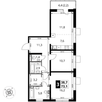 3-к. квартира, 73 м²