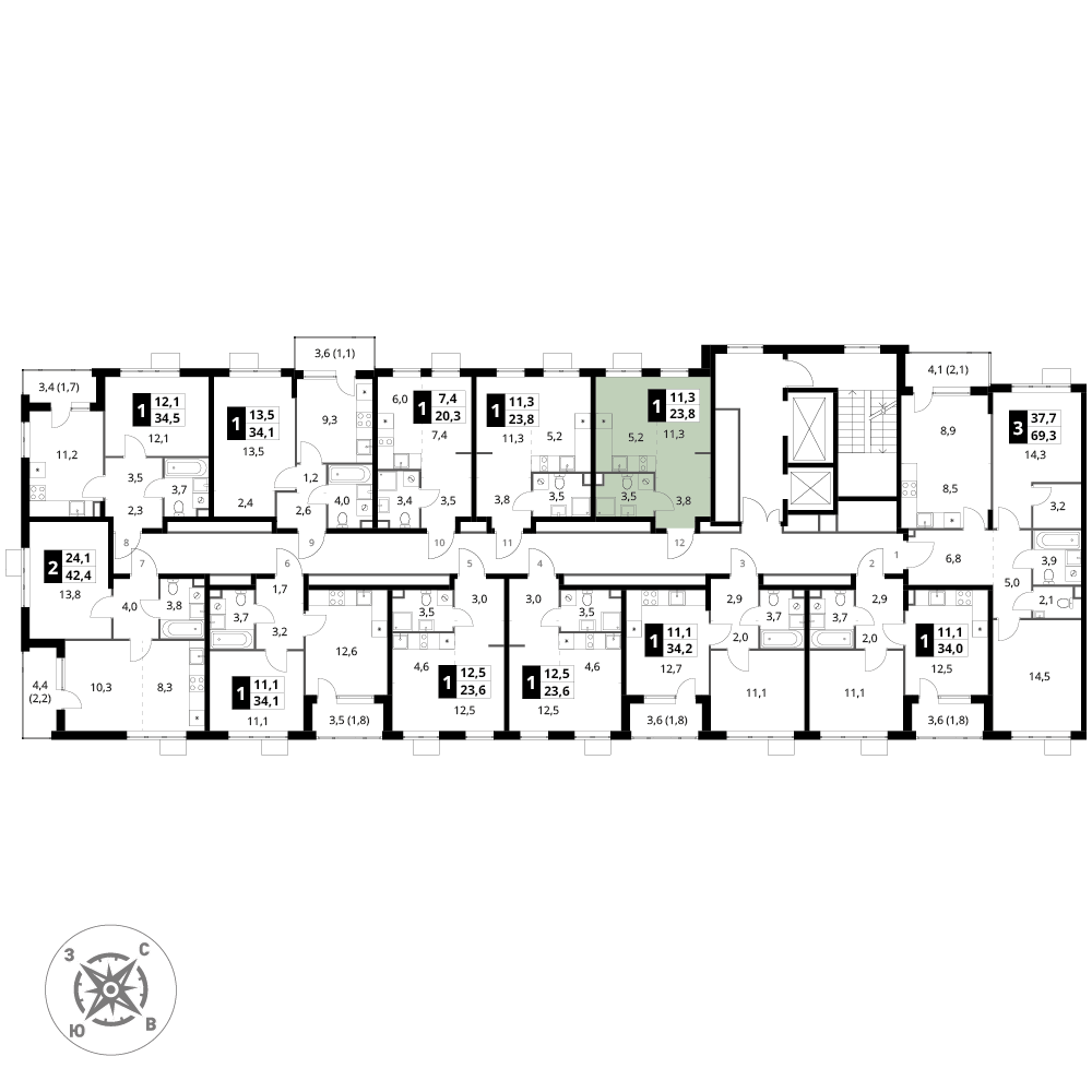 11 м²