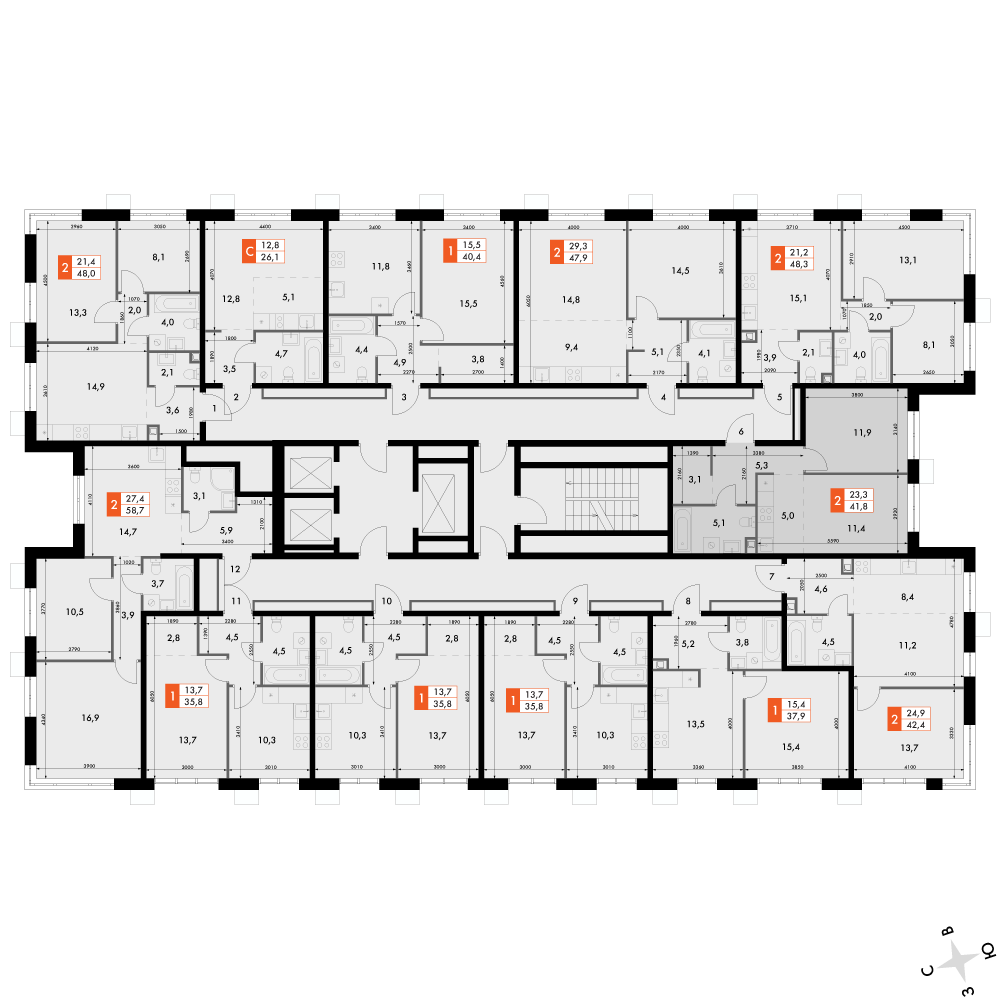 2-к. квартира, 41 м²