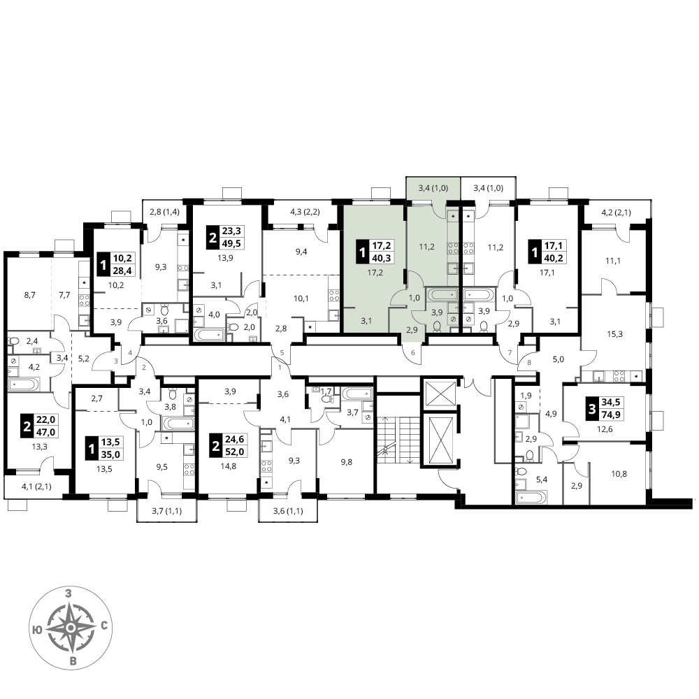 17 м²