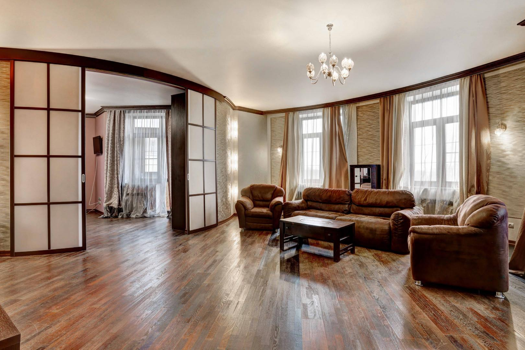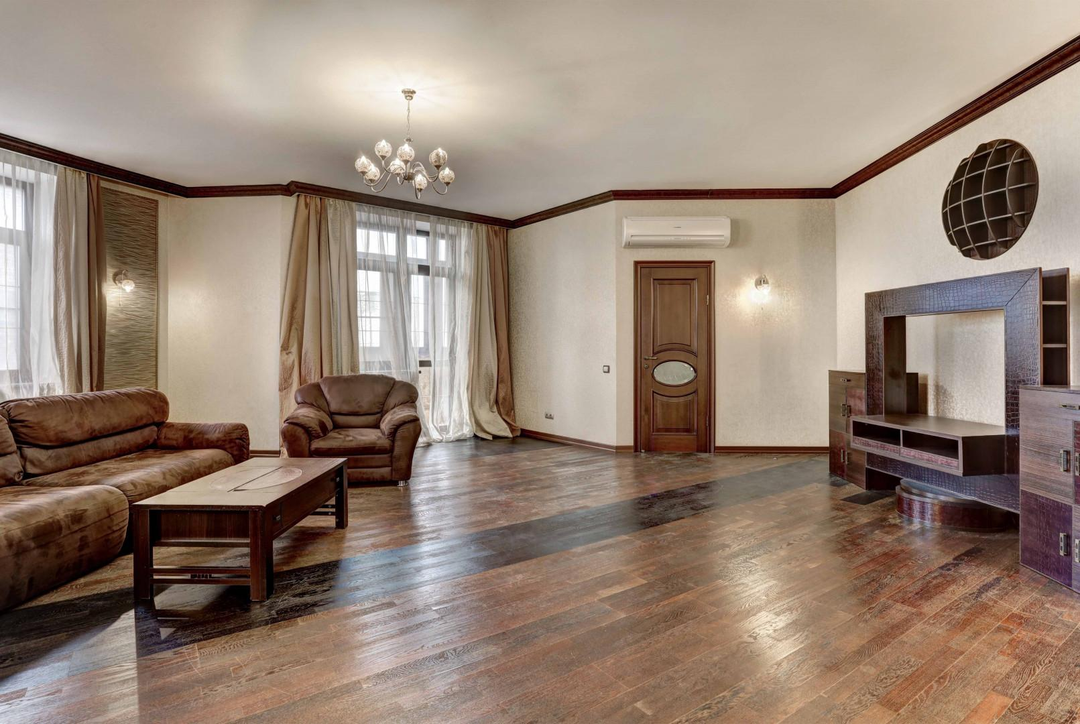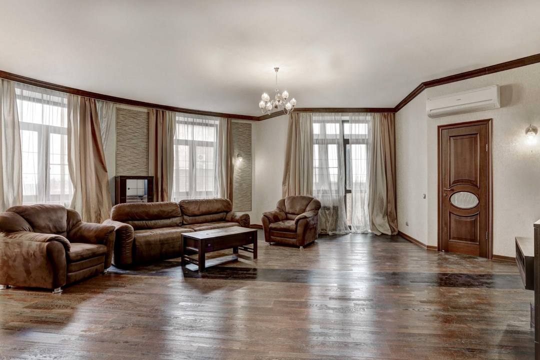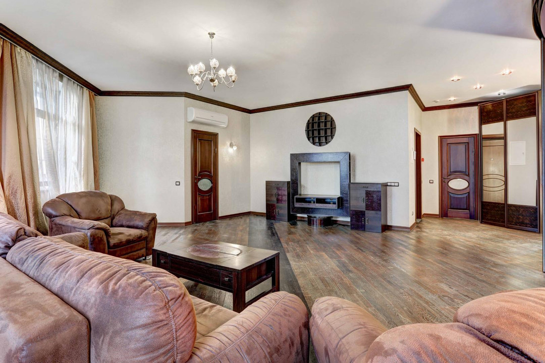 Просторная гостиная (54 м2) идеально подходит для совместного отдыха, встреч с друзьями, есть выход на лоджию